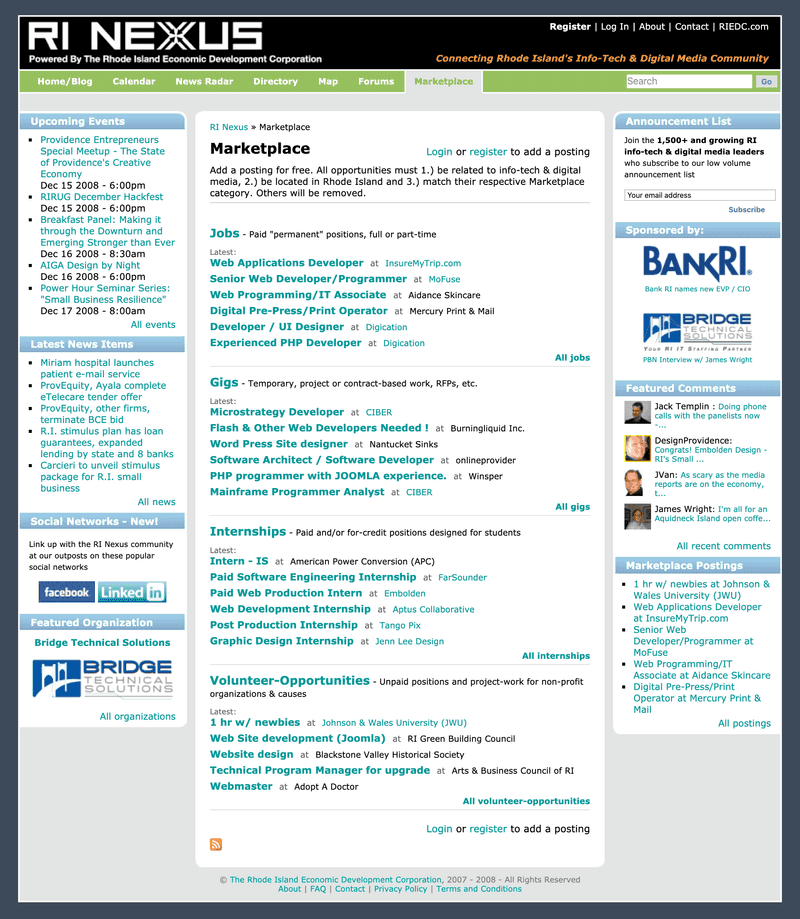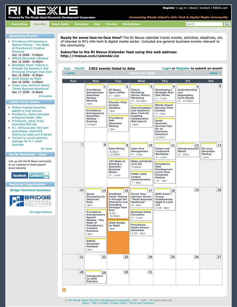 RI Nexus was a public-private initiative of the Rhode Island Economic Development Corporation. It was created to act as a hub for connecting Rhode Island’s info-tech & digital media community.